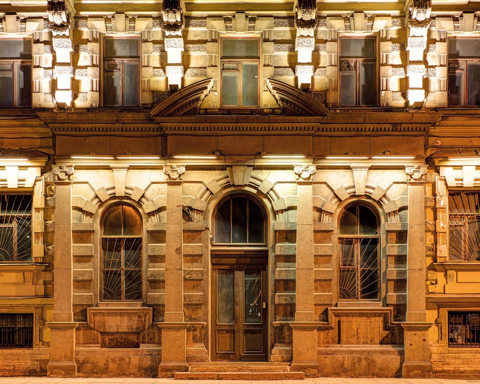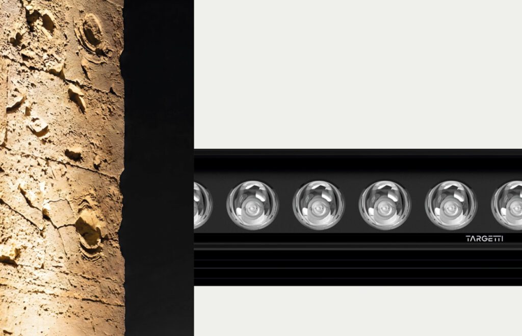 Grazing light emphasizes the three-dimensionality of architectural elements, restoring depth, rhythm, and identity to every vertical surface.