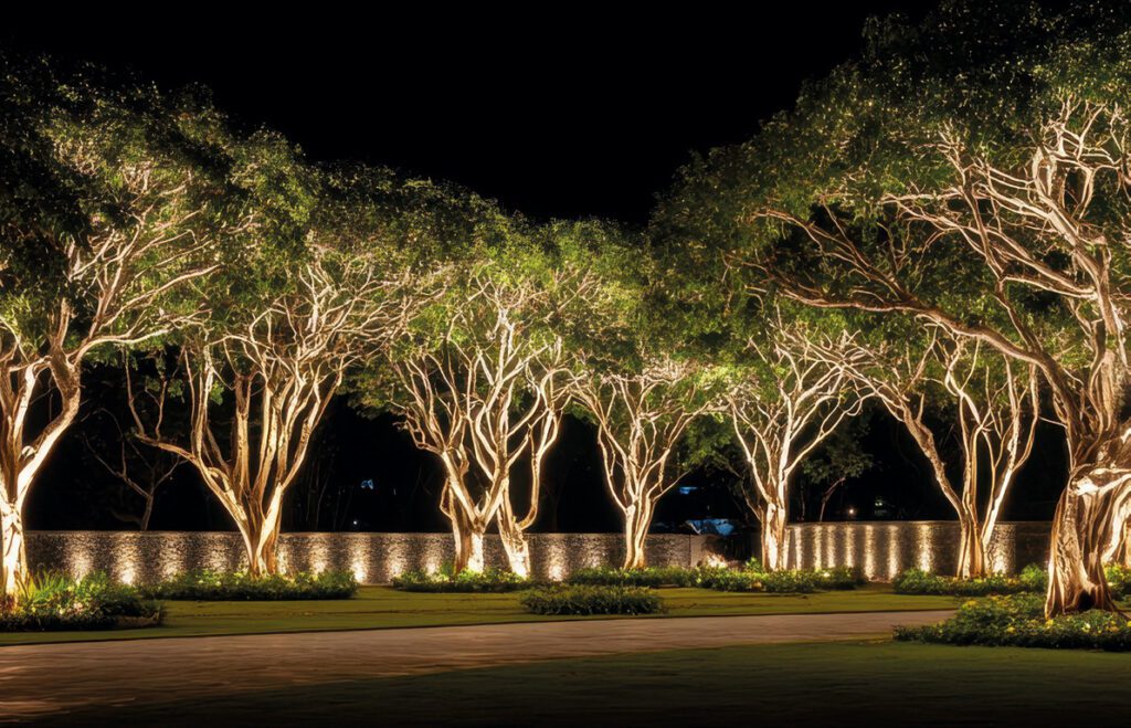 A harmonious lighting design integrated into the landscape enhances green spaces and ensures their safe use even during evening hours. Light creates welcoming atmospheres, transforming public spaces into places for meeting, passage, and social interaction, while enhancing shrubs and vegetation through the natural interplay of light and shadow.