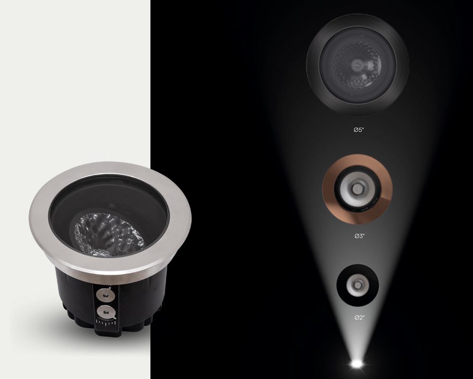 Its compactness allows use even in complex contexts or limited spaces, offering wide design freedom and a clean, orderly result consistent with the project vision. The reduced size delivers high performance: efficiency, optical precision, and light quality merge in a surprisingly small luminaire capable of remarkable output. A discreet, minimal lighting body integrates naturally into spaces, preserving their aesthetics and allowing the light lead the scene.